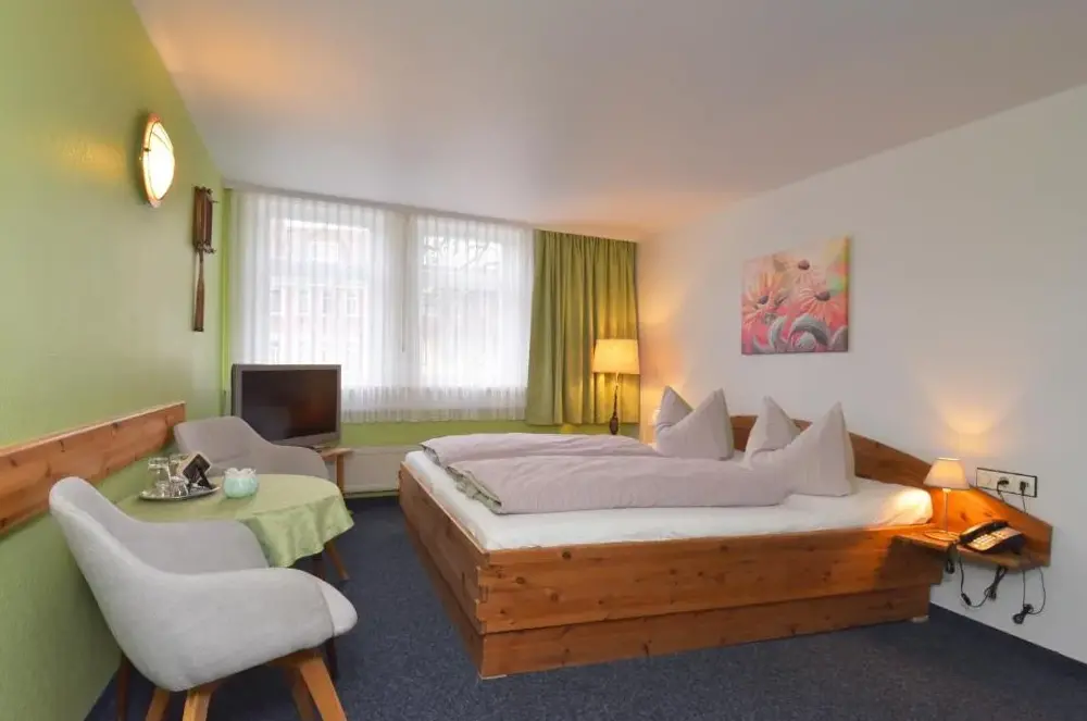Das Hotel Goldene Sonne in Arnstadt bietet bequeme Unterkünfte mit komfortablen Zimmern, die über kostenlose WLAN-Verbindung, private Check-in- und Check-out-Dienste sowie Menüs für spezielle Diäten verfügen. Jedes Zimmer ist mit einem Schalter, Bademänteln, Badezimmer, Haartrockner und kostenlosen Toilettenartikeln ausgestattet. Das Frühstück wird als köstlich bewertet und umfasst kontinentale, Buffet- oder à la carte-Angebote mit Saft, frischem Gebäck, Käse und Früchten. Der Standort des Hotels ermöglicht eine praktische Erreichbarkeit zu sehenswerten Attraktionen wie dem Friedenstein-Schloss (17 Mio.), der Bauhaus-Universität Weimar (27 Meilen) sowie verschiedenen Restaurants und Cafés in der Umgebung. Privatparkplätze sind gegen Gebühr verfügbar.